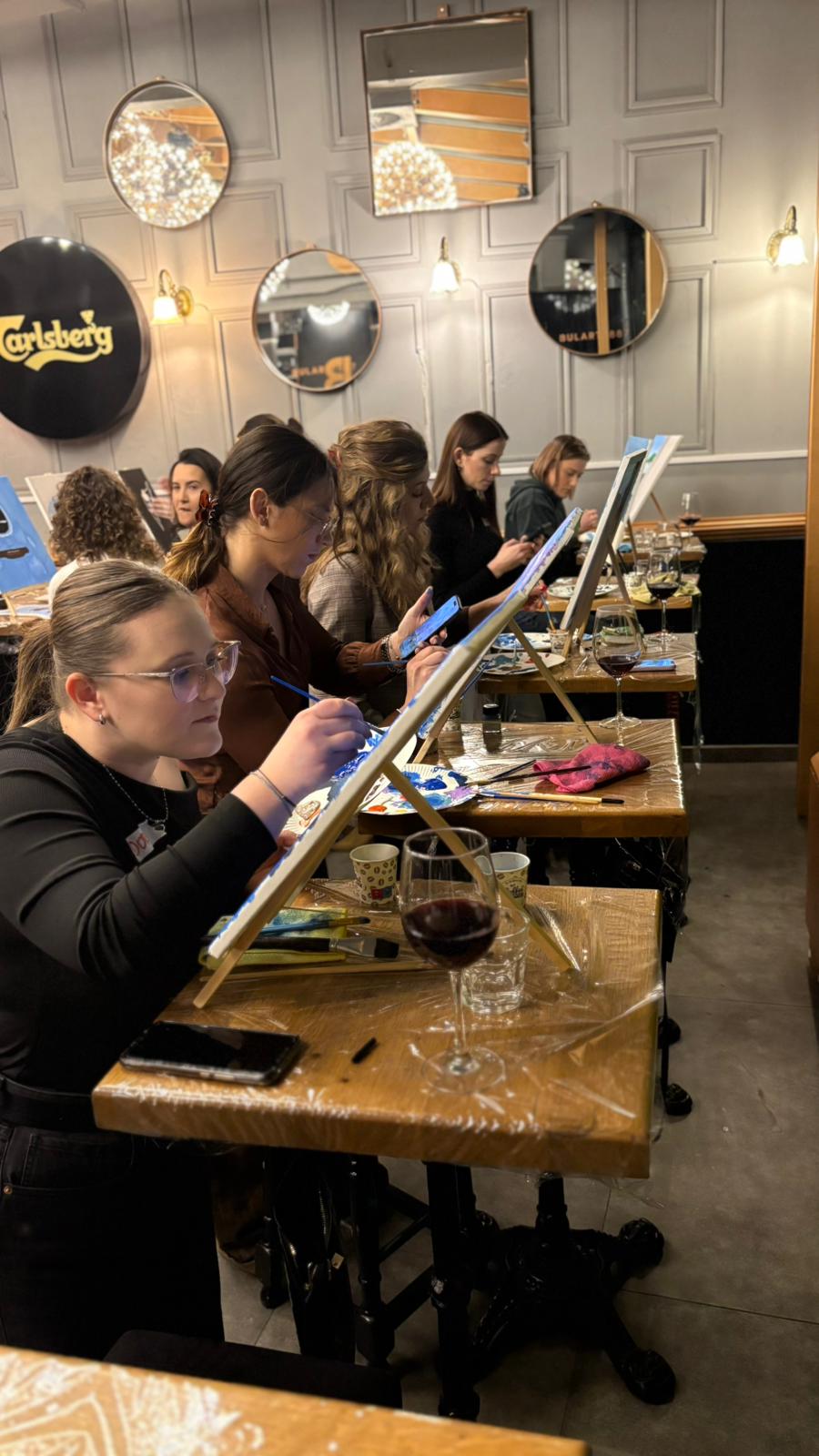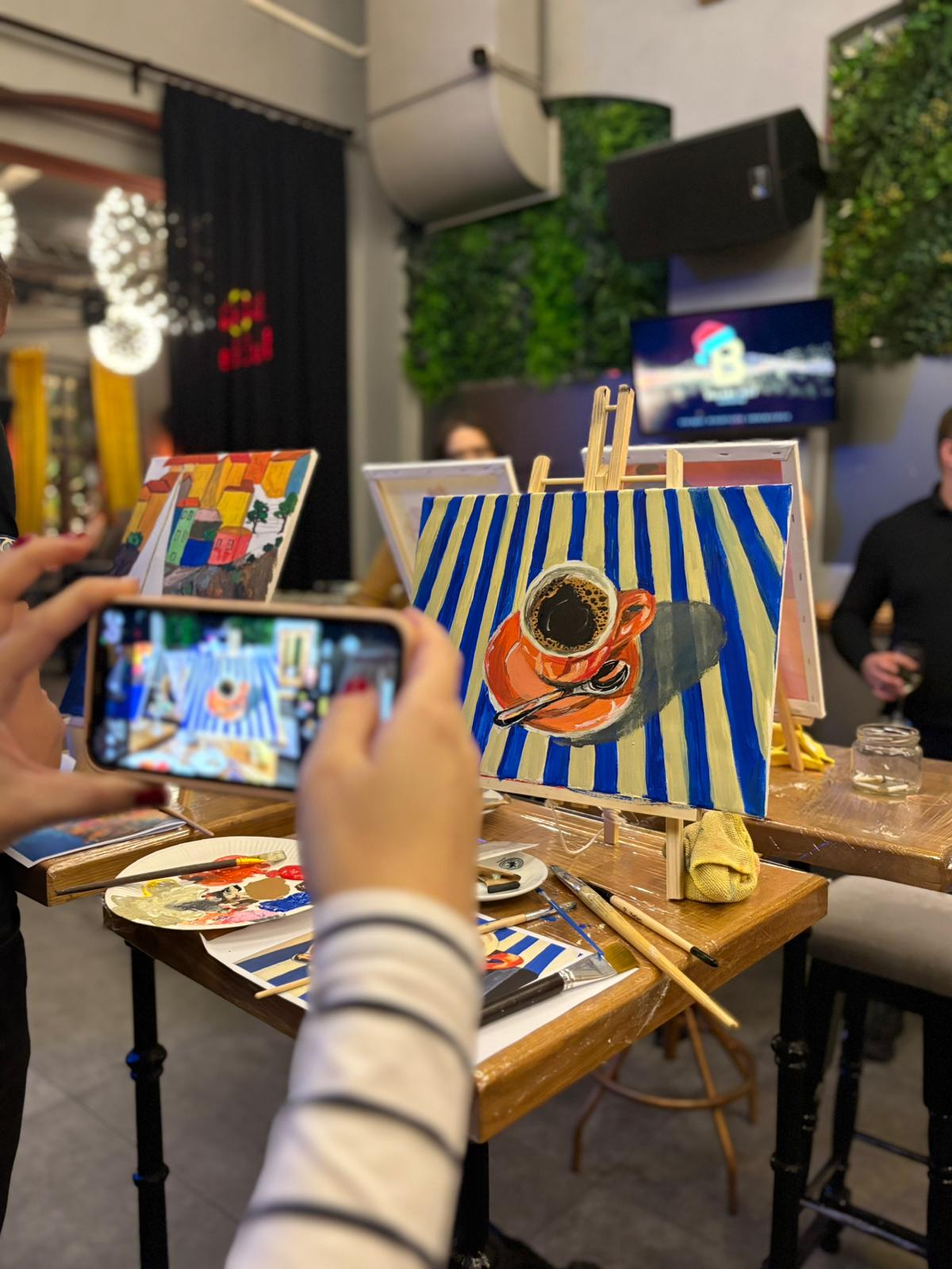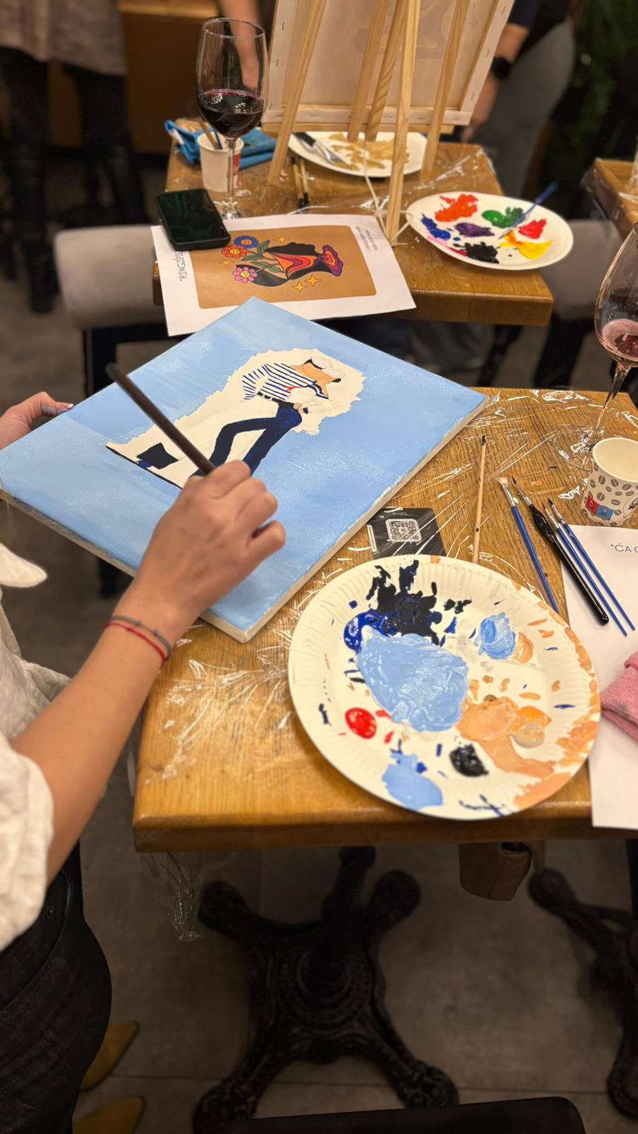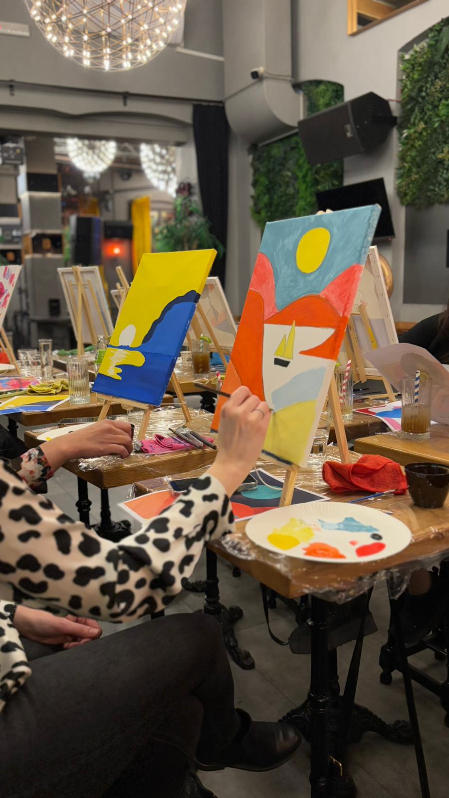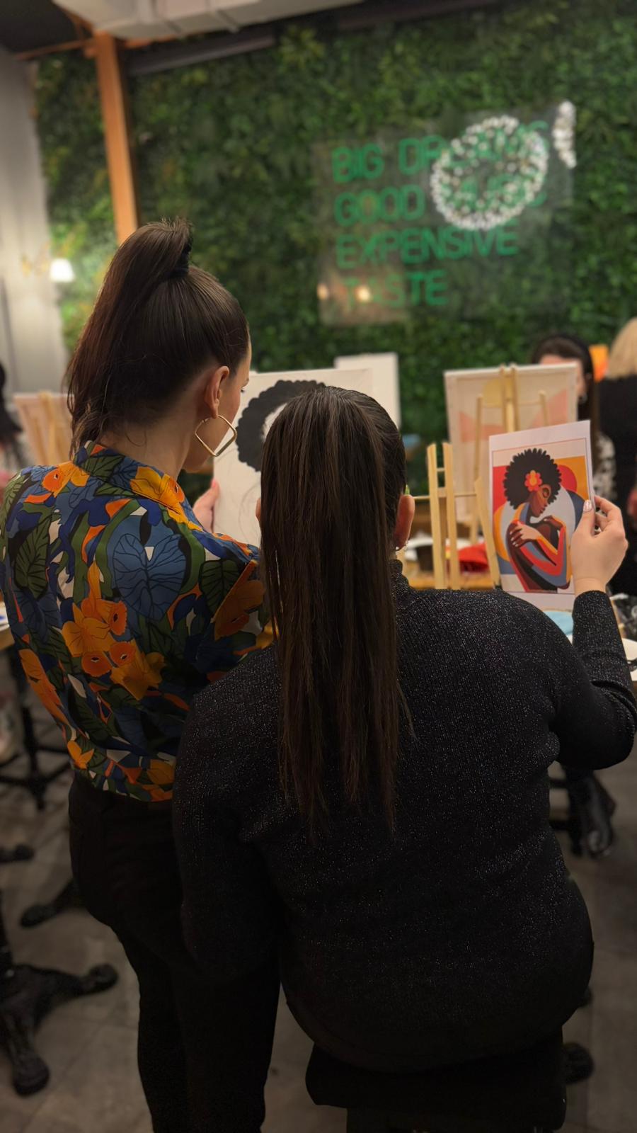 Uživajte u stručnom vodstvu dok slikate svoje remek-djelo. Pijuckajte pažljivo odabrano piće dok puštate da vaša kreativnost teče u ugodnoj atmosferi našeg studija.