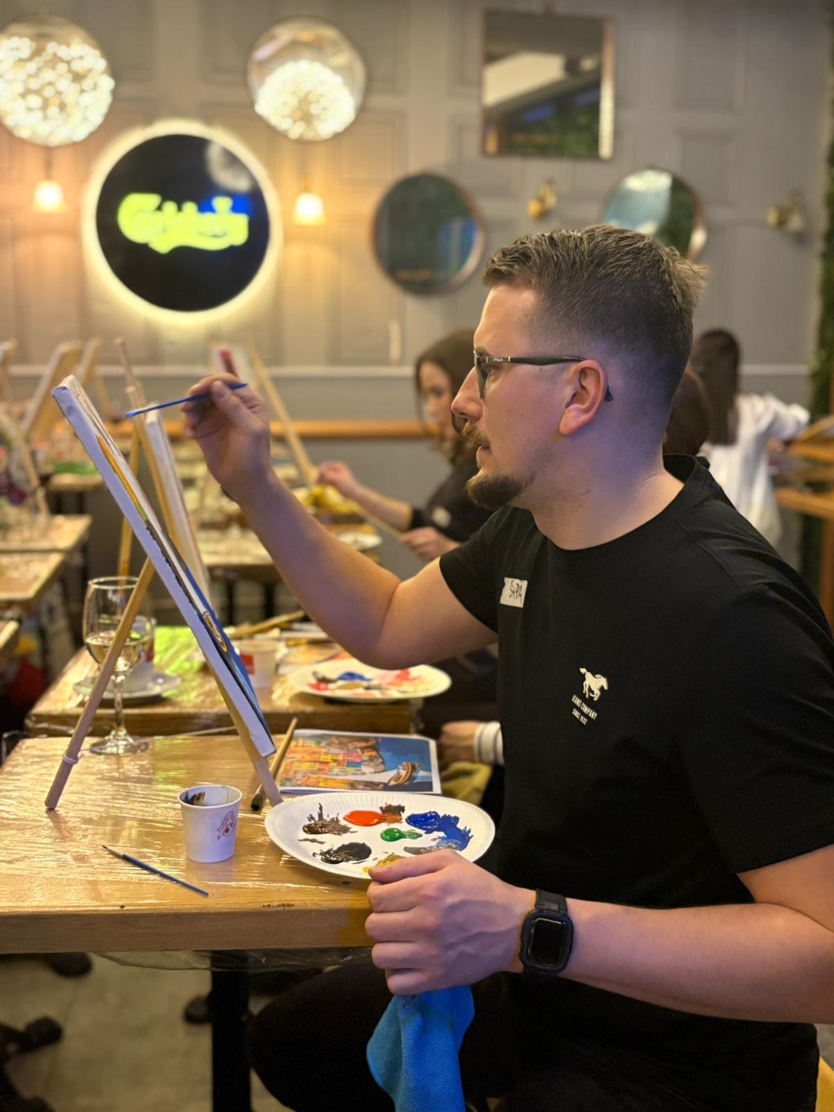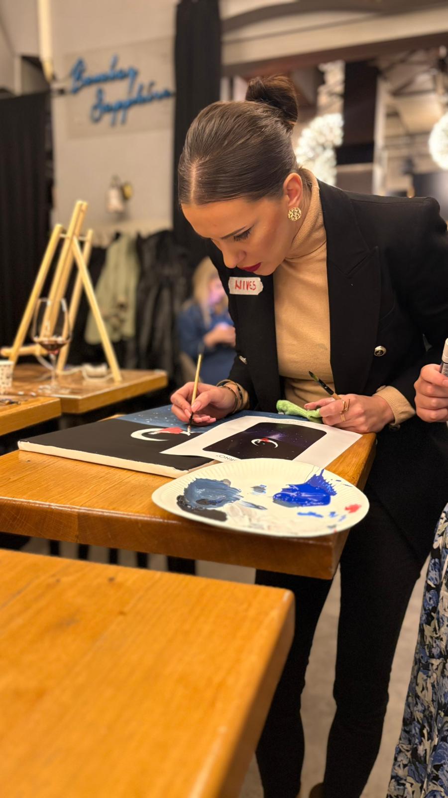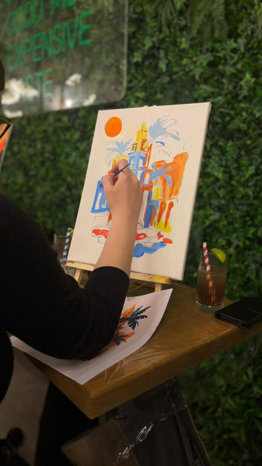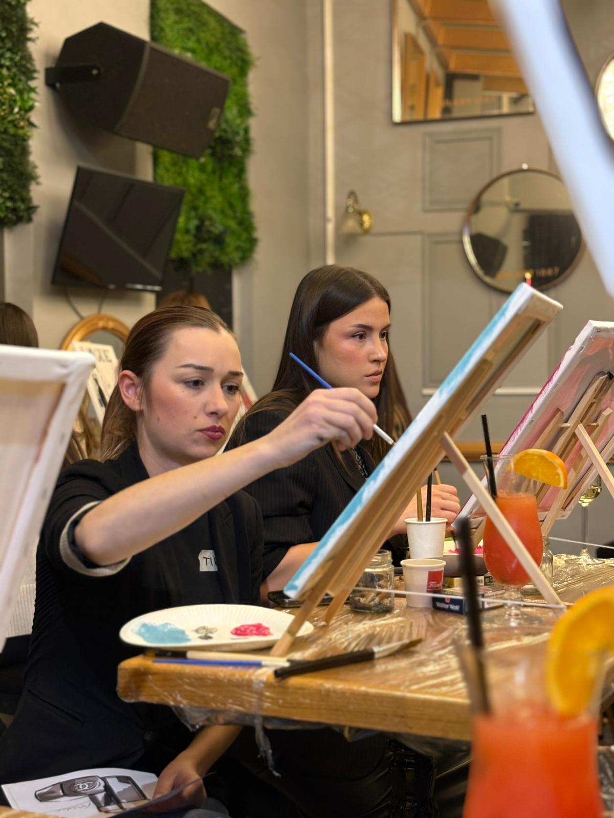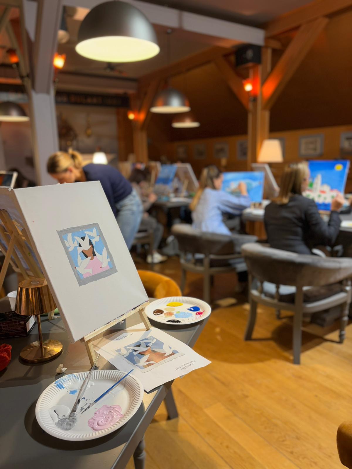 Uživajte u stručnom vodstvu dok slikate svoje remek-djelo. Pijuckajte pažljivo odabrano piće dok puštate da vaša kreativnost teče u ugodnoj atmosferi našeg studija.
